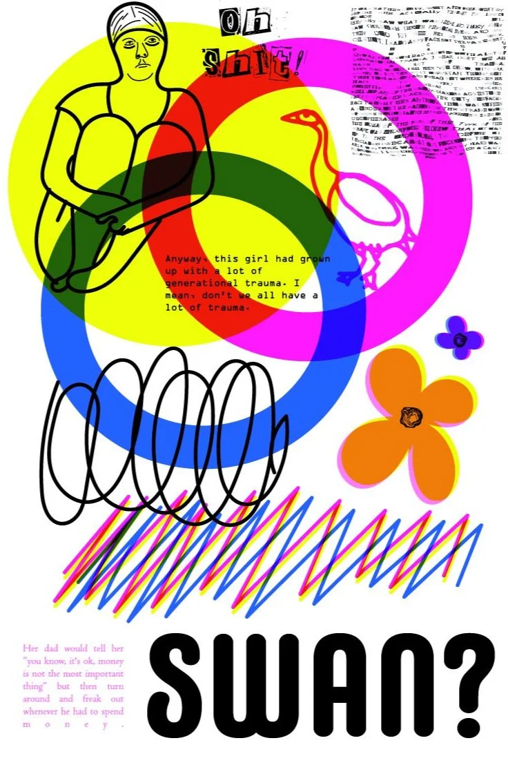 Students used computational writing methods to create absurd stories inspired by an assigned image. Individual stories were grouped together to create exquisite corpses. Students produced original imagery and printed the final product on the risograph.